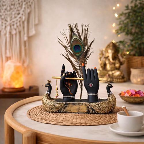 Lord Krishna Hands with Flute Idol (Small Size) | Krishnaji Divine Hands Idol with Flute and Peacock Feather | Krishna Statue for Car Dashboard & Griha Pravesh Gift